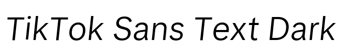TikTok Sans Text Dark 字体基本信息字体名称: TikTok Sans Text Dark字体子家族: Italic字体子家族 ID: 3.010;UKWN;TikTokSansTextDark-RegularOblique字体全名: TikTok Sans Text Dark Regular Oblique字体版本:…