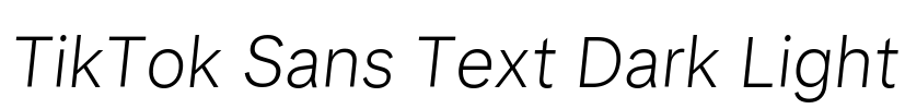 TikTok Sans Text Dark Light 字体基本信息字体名称: TikTok Sans Text Dark Light字体子家族: Italic字体子家族 ID: 3.010;UKWN;TikTokSansTextDark-LightOblique字体全名: TikTok Sans Text Dark Light Obli…