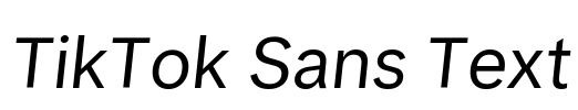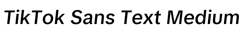 TikTok Sans Text Medium 字体基本信息字体名称: TikTok Sans Text Medium字体子家族: Italic字体子家族 ID: 3.010;UKWN;TikTokSansText-MediumOblique字体全名: TikTok Sans Text Medium Oblique字体版本: Versio…