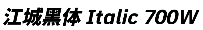 江城黑体 Italic 700W 字体基本信息字体名称: 江城黑体 Italic 700W字体子家族: Regular字体子家族 ID: JiangChengHeiTi-Italic-700W;Version 2.1字体全名: 江城黑体 Italic 700W字体版本: Version 2.1 2021/10/28字重信息: 700Pos…