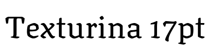 Texturina 17pt 字体基本信息字体名称: Texturina 17pt字体子家族: Regular字体子家族 ID: 1.002;OMNI;Texturina17pt-Regular字体全名: Texturina 17pt Regular字体版本: Version 1.002字重信息: 400Postscript: Textu…