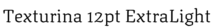 Texturina 12pt ExtraLight 字体基本信息字体名称: Texturina 12pt ExtraLight字体子家族: Regular字体子家族 ID: 1.002;OMNI;Texturina12pt-ExtraLight字体全名: Texturina 12pt ExtraLight字体版本: Version 1.0…