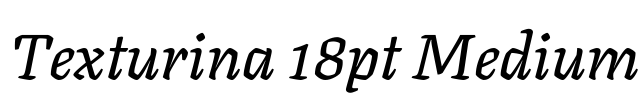 Texturina 18pt Medium 字体基本信息字体名称: Texturina 18pt Medium字体子家族: Italic字体子家族 ID: 1.002;OMNI;Texturina18pt-MediumItalic字体全名: Texturina 18pt Medium Italic字体版本: Version 1.002字重…