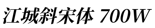 江城斜宋体 900W 字体基本信息字体名称: 江城斜宋体 900W字体子家族: Regular字体子家族 ID: JiangChengXieSong 900W:Version 2.0字体全名: 江城斜宋体 900W字体版本: Version 2.0字重信息: 900Postscript: JiangChengXieSong-900W字体大…