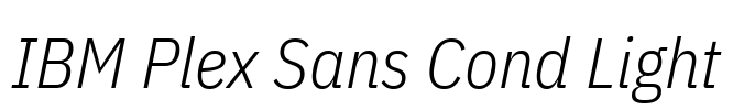 IBM Plex Sans Cond Light 字体基本信息字体名称: IBM Plex Sans Cond Light字体子家族: Italic字体子家族 ID: 1.3;IBM ;IBMPlexSansCond-LightItalic字体全名: IBM Plex Sans Cond Light Italic字体版本: Version…