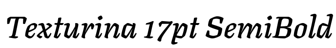 Texturina 17pt SemiBold 字体基本信息字体名称: Texturina 17pt SemiBold字体子家族: Italic字体子家族 ID: 1.002;OMNI;Texturina17pt-SemiBoldItalic字体全名: Texturina 17pt SemiBold Italic字体版本: Version…