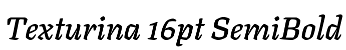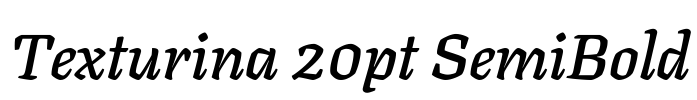 Texturina 20pt SemiBold 字体基本信息字体名称: Texturina 20pt SemiBold字体子家族: Italic字体子家族 ID: 1.002;OMNI;Texturina20pt-SemiBoldItalic字体全名: Texturina 20pt SemiBold Italic字体版本: Version…