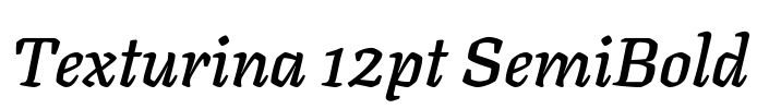 Texturina 12pt SemiBold 字体基本信息字体名称: Texturina 12pt SemiBold字体子家族: Italic字体子家族 ID: 1.002;OMNI;Texturina12pt-SemiBoldItalic字体全名: Texturina 12pt SemiBold Italic字体版本: Version…