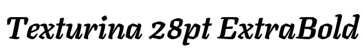 Texturina 28pt ExtraBold 字体基本信息字体名称: Texturina 28pt ExtraBold字体子家族: Italic字体子家族 ID: 1.002;OMNI;Texturina28pt-ExtraBoldItalic字体全名: Texturina 28pt ExtraBold Italic字体版本: Ver…