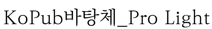 KoPub바탕체_Pro Light 字体基本信息字体名称: KoPub바탕체_Pro Light字体子家族: Light字体子家族 ID: FONTRIX_KoPubBatangPL字体全名: KoPub바탕체_Pro Light字体版本: Version 2.1.1; Build Release字重信息: 300Postscript:…