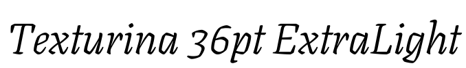 Texturina 36pt ExtraLight 字体基本信息字体名称: Texturina 36pt ExtraLight字体子家族: Italic字体子家族 ID: 1.002;OMNI;Texturina36pt-ExtraLightItalic字体全名: Texturina 36pt ExtraLight Italic字体版本:…