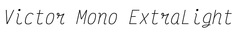 Victor Mono ExtraLight 字体基本信息字体名称: Victor Mono ExtraLight字体子家族: Italic字体子家族 ID: 1.280;UKWN;VictorMono-ExtraLightItalic字体全名: Victor Mono ExtraLight Italic字体版本: Version 1.2…