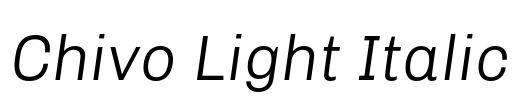 Chivo Light Italic 字体基本信息字体名称: Chivo Light Italic字体子家族: Regular字体子家族 ID: 1.007;OMNI;Chivo-LightItalic字体全名: Chivo Light Italic字体版本: Version 1.007;PS 001.007;hotconv 1.0.88…