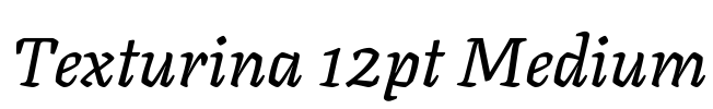 Texturina 12pt Medium 字体基本信息字体名称: Texturina 12pt Medium字体子家族: Italic字体子家族 ID: 1.002;OMNI;Texturina12pt-MediumItalic字体全名: Texturina 12pt Medium Italic字体版本: Version 1.002字重…