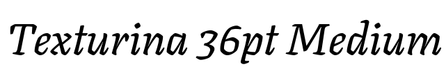 Texturina 36pt Medium 字体基本信息字体名称: Texturina 36pt Medium字体子家族: Italic字体子家族 ID: 1.002;OMNI;Texturina36pt-MediumItalic字体全名: Texturina 36pt Medium Italic字体版本: Version 1.002字重…
