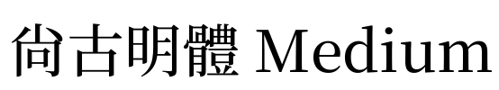 尙古明體 Medium 字体基本信息字体名称: 尙古明體 Medium字体子家族: Regular字体子家族 ID: 1.021;GUIW;ShangguSerif-Medium字体全名: 尙古明體 Medium字体版本: Version 1.021字重信息: 500Postscript: ShangguSerif-Medium字体大小:…