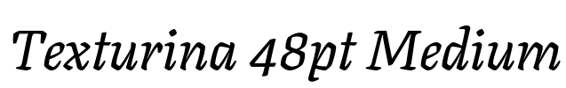 Texturina 48pt Medium 字体基本信息字体名称: Texturina 48pt Medium字体子家族: Italic字体子家族 ID: 1.002;OMNI;Texturina48pt-MediumItalic字体全名: Texturina 48pt Medium Italic字体版本: Version 1.002字重…