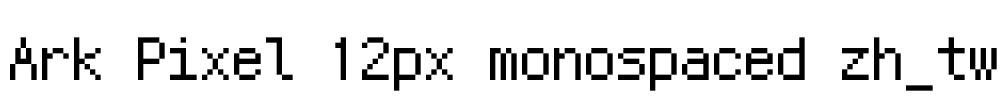 Ark Pixel 12px monospaced zh_tw 字体基本信息 字体名称: Ark Pixel 12px monospaced zh_tw 字体子家族: Regular 字体子家族 ID: Ark-Pixel-12px-monospaced-zh_tw-Regular;2023.03.16 字体全名: Ark Pixel 1…
