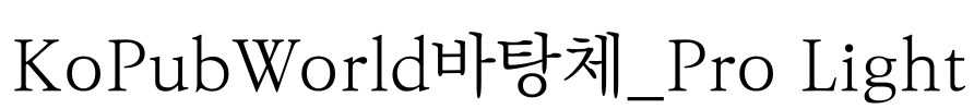 KoPubWorld바탕체_Pro Light 字体基本信息字体名称: KoPubWorld바탕체_Pro Light字体子家族: Light字体子家族 ID: FONTRIX_KoPubWorldBatangPL字体全名: KoPubWorld바탕체_Pro Light字体版本: Version 1.1.1; Build Release…
