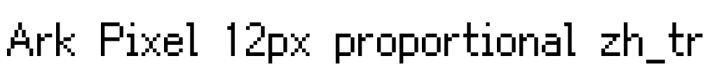 Ark Pixel 12px proportional zh_tr 字体基本信息字体名称: Ark Pixel 12px proportional zh_tr字体子家族: Regular字体子家族 ID: Ark-Pixel-12px-proportional-zh_tr-Regular;2023.03.16字体全名: Ark Pixel…