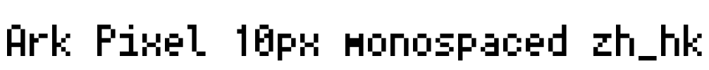 Ark Pixel 10px monospaced zh_hk 字体基本信息字体名称: Ark Pixel 10px monospaced zh_hk字体子家族: Regular字体子家族 ID: Ark-Pixel-10px-monospaced-zh_hk-Regular;2023.03.16字体全名: Ark Pixel 10px …