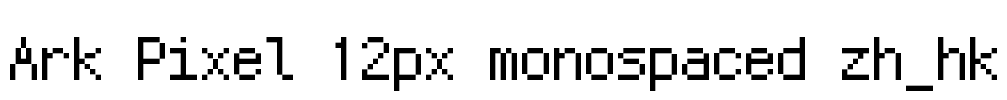 Ark Pixel 12px monospaced zh_hk 字体基本信息字体名称: Ark Pixel 12px monospaced zh_hk字体子家族: Regular字体子家族 ID: Ark-Pixel-12px-monospaced-zh_hk-Regular;2023.03.16字体全名: Ark Pixel 12px …