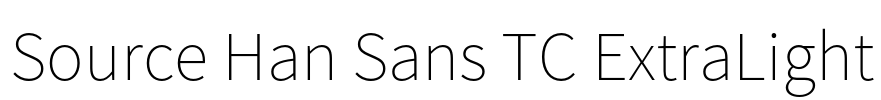 Source Han Sans TC ExtraLight 字体基本信息字体名称: Source Han Sans TC ExtraLight字体子家族: Regular字体子家族 ID: 2.004;ADBO;SourceHanSansTC-ExtraLight;ADOBE字体全名: Source Han Sans TC ExtraLi…