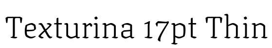 Texturina 17pt Thin 字体基本信息字体名称: Texturina 17pt Thin字体子家族: Regular字体子家族 ID: 1.002;OMNI;Texturina17pt-Thin字体全名: Texturina 17pt Thin字体版本: Version 1.002字重信息: 250Postscript: T…