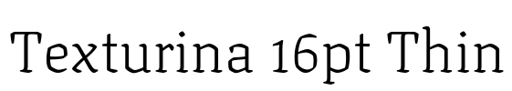 Texturina 16pt Thin 字体基本信息字体名称: Texturina 16pt Thin字体子家族: Regular字体子家族 ID: 1.002;OMNI;Texturina16pt-Thin字体全名: Texturina 16pt Thin字体版本: Version 1.002字重信息: 250Postscript: T…