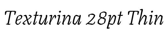 Texturina 28pt Thin 字体基本信息字体名称: Texturina 28pt Thin字体子家族: Italic字体子家族 ID: 1.002;OMNI;Texturina28pt-ThinItalic字体全名: Texturina 28pt Thin Italic字体版本: Version 1.002字重信息: 250P…