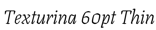 Texturina 60pt Thin 字体基本信息字体名称: Texturina 60pt Thin字体子家族: Italic字体子家族 ID: 1.002;OMNI;Texturina60pt-ThinItalic字体全名: Texturina 60pt Thin Italic字体版本: Version 1.002字重信息: 250P…