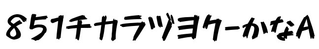 851チカラヅヨク-かなA 字体基本信息字体名称: 851チカラヅヨク-かなA字体子家族: Regular字体子家族 ID: 851チカラヅヨク-かなA字体全名: 851チカラヅヨク-かなA字体版本: Version 0.04字重信息: 400Postscript: 851CHIKARA-DZUYOKU-KANA-A字体大小: 4 MB字…